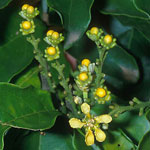 The Bunchosia clade is very strongly supported by molecular evidence—see the phylogenetic tree above, with bootstrap values above the branches, which is from Davis & Anderson (2010 [pdf]). On the other hand, in their morphology these genera are extremely diverse, especially in their fruits, which include dry and fleshy fruits, dehiscent and indehiscent fruits, and dry fruits with the walls smooth or bearing several different kinds of outgrowths. Because of this fruit diversity, Niedenzu (1928) placed these six genera in four different tribes, and even in the two cases where he put pairs of genera in the same tribe (Heladena and Thryallis, Echinopterys and Henleophytum), our tree puts the members of those pairs in different subclades, indicating that they are not sisters in either case. Most of the shared characters given in the description above (pseudoracemose inflorescences, yellow petals, ten fertile stamens with the anthers ± alike) are probably symplesiomorphic in this clade. One possible synapomorphy for the clade is the distinct, persistent stipules borne adaxially on the base of the petiole. The pollen is also similar and relatively derived, as was noted for Bunchosia, Heladena, Henleophytum, and Thryallis by Lowrie (1982). The beauty of the Bunchosia clade is that it serves as a convenient, if surprising, repository for a group of genera that are all more or less isolated in their morphological characters, a sort of refuge for derived groups that would otherwise have no home.