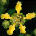 Bunchosia neillii. a. Flowering branch. b. Large leaf, adaxial view. c. Base of petiole bearing stipules. d. Base of lamina, abaxial view, showing paired glands. e. Detail showing leaf venation, abaxial view. f. Flower bud. g. Flower, posterior petal uppermost. h. Posterior petal. i. Gynoecium. Scale bar equivalents: a, b, 4 cm; c, 4 mm; d, 8 mm; e, f, 4 mm; g, 8 mm; h, 5 mm; i, 2.7 mm. (Based on Neill et al. 10275, MICH). Drawn by Karin Douthit. First published in Brittonia 67: 247. 2015; reproduced with permission of the authors.
