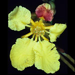 Mezia beckii. a. Large leaf, abaxial view. b. Enlargement of abaxial surface of lamina. c. Glands at base of lamina, abaxial view. d. Inflorescence. e. Umbel of flower buds. f. Flower subtended by bracteoles, anterior sepal in center, petals removed (note gland on one bracteole). g. Flower from below, posterior petal uppermost. h. Flower from above, posterior petal uppermost. i. Posterior petal, abaxial view. j. Androecium laid out, abaxial view, stamen above "j" opposite posterior petal. k. Anthers, adaxial view, from opposite sepal (left) and from opposite petal (right). l. Gynoecium, anterior style at left. m. Distal portion of style. n. Samara, abaxial view. o. Nut of samara, adaxial view. p. Embryo, from below (left) and from side (right).