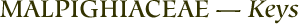 Keys to genera and species are included in many of the works on Malpighiaceae listed under Literature; however, some of the names in these accounts are out-of-date and no longer accepted.