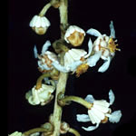 The petals in the Acmanthera clade are mostly white or pink, greenish in a few species, sometimes turning yellowish in age—the truly yellow petals found in many basal Malpighiaceae, e.g., Galphimia, Byrsonima spp., are completely unknown here. The clade is also interesting for the fact that the inflorescences are strictly lateral and all the flowers are borne singly (one-flowered cincinni); in the other clades at the base of the family terminal inflorescences are common and at least some genera have retained in some species the presumably ancestral several-flowered cincinni.