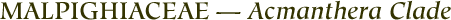 In other characters the Acmanthera clade fits well into the larger grouping that has been called subfamily Byrsonimoideae: erect (non-vining) habit, well-developed intrapetiolar stipules, sepals all biglandular or all eglandular, small, radially symmetrical, tricolporate pollen, and slender subulate styles with tiny apical or slightly subapical stigmas. The Acmanthera clade and its sister, the Byrsonima clade, are alike in having their leaves, bracts, and bracteoles completely eglandular.