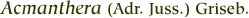Acmanthera fernandesii. a. Flowering branch, with enlargements of adaxial (above) and abaxial (below) leaf surfaces. b. Axis of inflorescence to show small bracts and minute bracteoles. c. Flower, posterior petal uppermost. d. Petal, abaxial view. e. Stamen, natural shape, adaxial view. f. Stamens flattened to show wings and apical appendage, abaxial view (left) and adaxial view (right). g. Gynoecium.