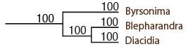 2. Petals white and/or pink or red, or 4 white and the posterior pale yellow; anthers with apical hairs many, hardly or not at all different from other hairs on stamen; stamens 10; ovary with all 3 locules developed, and usually all fertile (except in some populations of B. fimbriata); fruit with 3 locules, 1–3 containing seeds; sepals not or hardly accrescent in fruit.