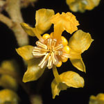 Uses: The fruits of B. crassifolia (L.) H. B. K. sens. lat., which are yellow and about the size of a cherry, are gathered from wild and cultivated trees from Mexico to central South America and sold in markets under the names chaparro, chaparro manteco, muricí, murucí, nance, nanche, and nancite. The fruits are eaten as is or used to make ice cream (Belém) or wine (Costa Rica), and in the Yucatan Peninsula of Mexico they are sold preserved in a sweet syrup. The astringent qualities of the bark, for which the genus was named (see above), are no longer important in tanning leather, but one does occasionally see a comment on a plant label that the bark is a febrifuge. The species B. lucida (Mill.) DC., which is native in the West Indies, Bahamas, and southern Florida, is cultivated as an ornamental shrub; it is often called locustberry.