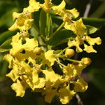 The presence of the African genus Flabellaria in this clade is no surprise in the sense that in most of its morphological characters it fits nicely with the other six genera here; its samara is identical to that found in several of these genera. Lowrie (1982, p. 95) noted that the pollen of Flabellaria "is totally anomalous in the Old World" and added, "Its fruit is most similar to New World genera with lateral fruit-wings and its pollen does not disallow a relationship with any of those genera." Flabellaria is an example of the repeated migration of lineages of Malpighiaceae from the Neotropics to the Old World (Davis et al., 2001; pdf). Having arrived in the Old World, the ancestor of Flabellaria lost the calyx glands found in the neotropical genera of the clade, and the symmetry of its corolla shifted from bilateral to radial.