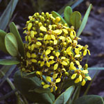 Verrucularia glaucophylla. a. Flowering branch. b. Petiole and stipules, adaxial view. c. Three-flowered cincinnus. d. Lateral petal, abaxial view. e. Posterior petal, abaxial view. f. Anthers, adaxial view (above) and abaxial view (below). g. Gynoecium. h. Apex of style. i. Fruit. j. Cocci, abaxial view (left) and lateral view (right). k. Embryo. Scale bar equivalents: a, 4 cm; b, 4 mm; c, 1 cm; d, e, 4 mm; f, g, 1.3 mm; h, 0.4 mm; i–k, 4 mm. Based on: a, i–k, Carvalho et al. 1036, MICH; b, Ganev 1903, MICH; c–h, Harley et al. 25901, MICH. Drawn by Karin Douthit. © University of Michigan Herbarium.