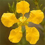 Flowers small (about 6 mm in diameter) to fairly large (about 4 cm in diameter), mostly bisexual (a few genera dioecious or functionally dioecious), subtly to strongly bilaterally symmetrical or, in some genera, radially symmetrical, hypogynous except perigynous in Barnebya, mostly all alike and chasmogamous but a few genera with showy chasmogamous flowers and tiny reduced cleistogamous flowers borne ± simultaneously. Sepals 5, persistent, mostly imbricated in bud, distinct or partially connate at base or adnate to the receptacle, the great majority of New World taxa bearing (1) 2 large multicellular abaxial glands on all 5 sepals or on the lateral 4, most Old World taxa with the calyx glands much reduced in number and size or absent. Petals 5, distinct, mostly clawed, alternating with the sepals, imbricated with the posterior innermost and 1 of the anterior-lateral pair outermost, most often yellow, pink, or white, sometimes other colors but very rarely blue, the posterior ("flag") petal often different from the lateral 4. Androecium mostly of 10 stamens in a single whorl, fewer in some genera, up to 15 in Lasiocarpus, borne on the receptacle between perianth and gynoecium, the filaments always present, short to long, alike or heteromorphic, distinct or partially connate, the anthers alike or heteromorphic, 4-locular, mostly longitudinally dehiscent along the inner edge of each locule, a few genera with apical or subapical pores or very short slits. Gynoecium superior, usually comprising 3 distinct to connate carpels, mostly 1 anterior on the plane of symmetry and 2 posterior on each side of the plane of symmetry, the carpels only 2 in several genera and very rarely 4, mostly all fertile, each fertile locule containing 1 pendent anatropous ovule, the styles mostly as many as carpels and distinct, connate or reduced in number in a few genera.
