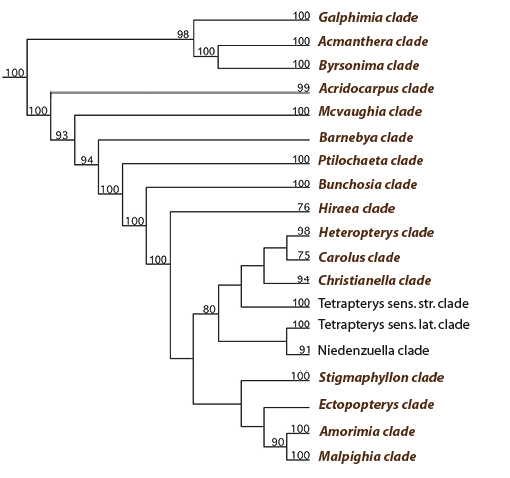 The phylogenetic tree is based on molecular and morphological data compiled by C. C. Davis and W. R. Anderson and reported in Davis & Anderson (