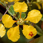 Gaudichaudiana arnottiana. a. Flowering branch. b. Base of pair of leaves, with enlarged hairs from adaxial surface (left) and abaxial surface (right). c. Bud of chasmogamous flower. d. Chasmogamous flower, posterior petal uppermost. e. Anthers, adaxial view (left) and abaxial view (right). f. Gynoecium. g. Samaras, abaxial view (left) and adaxial view (right).